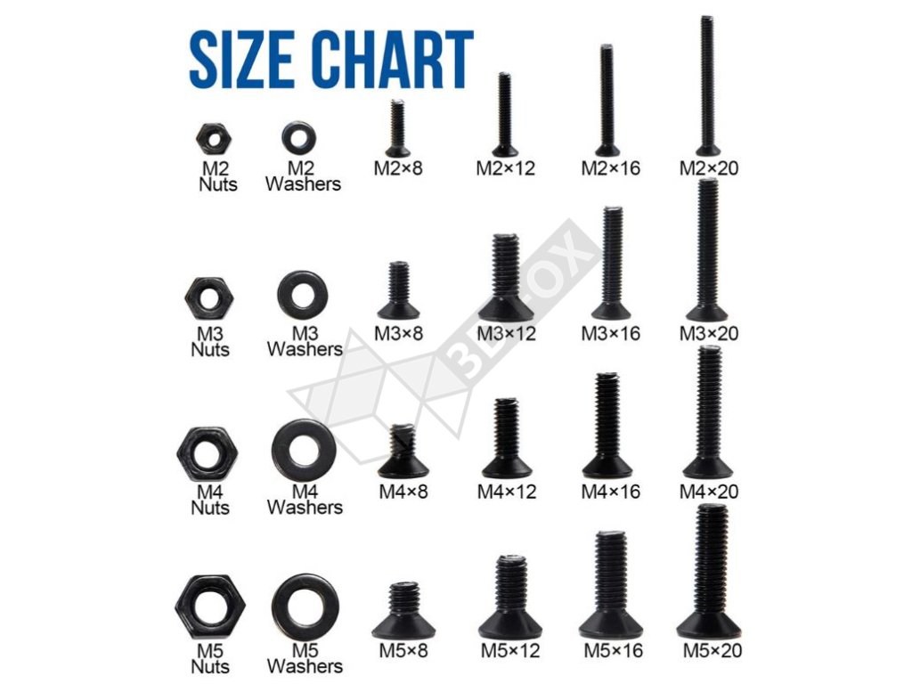 - M2x8/M2x12/M2x16/M2x20 - alle 45 Stück + Muttern und Unterlegscheiben 185 Stück
