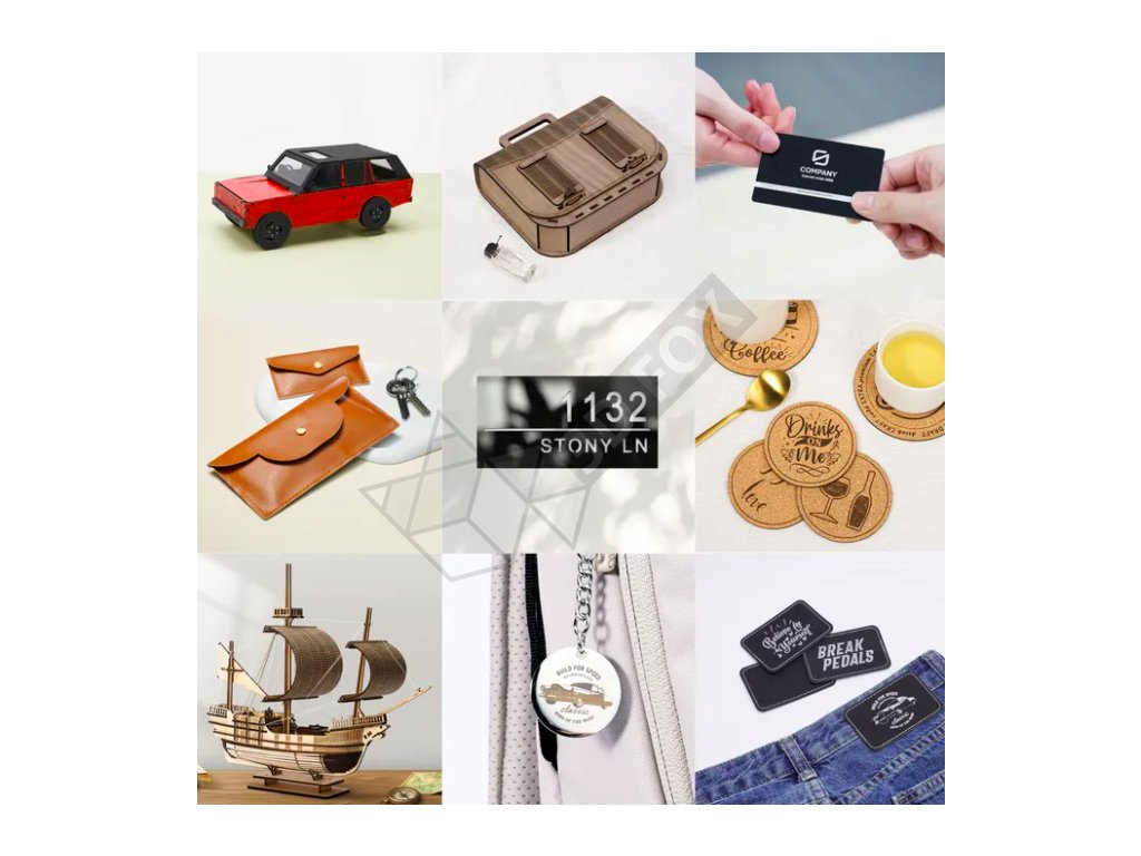 Das Kit ist für eine breite Palette von Anwendungen gedacht: vom Schneiden eines Organizers aus Holz über die Herstellung eines Acrylanhängers bis hin zur Personalisierung von Haustieranhängern und der Gravur von Metallanhängern.