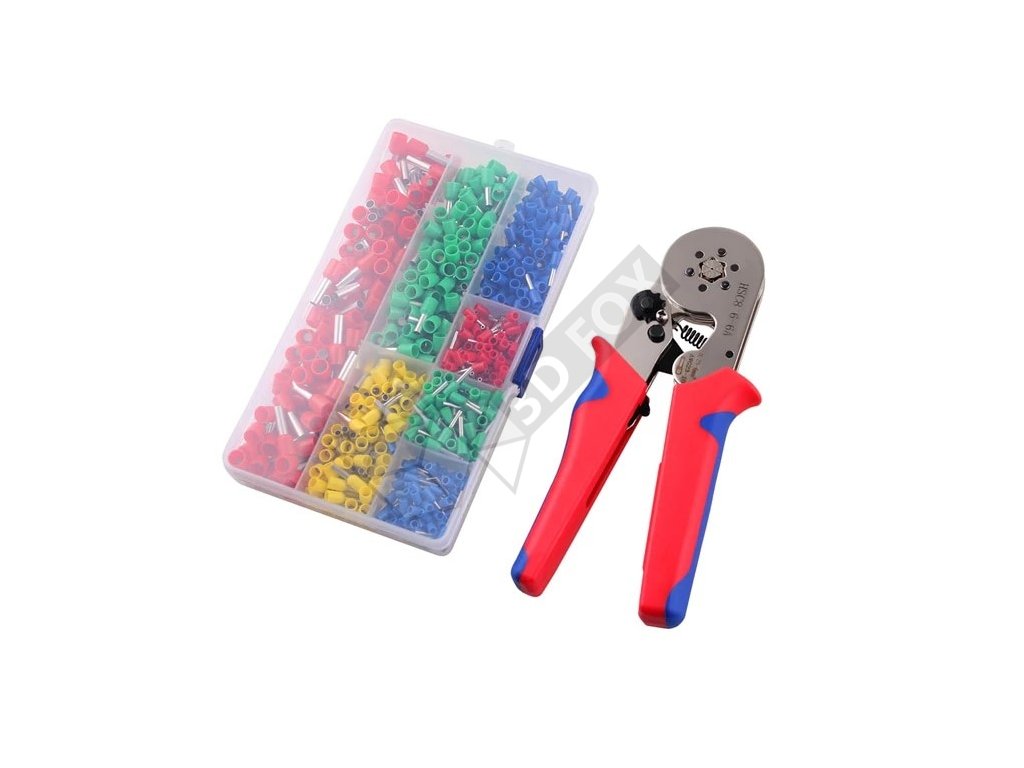 Die Kabelcrimpzange ist das perfekte Werkzeug für jeden Heimwerker. Sie ist nicht nur für Profis, sondern auch für Heimwerker geeignet - sie wird unter anderem bei der Installation von Kabelschuhen unentbehrlich sein. Sein Arbeitsbereich für Durchführungen beträgt 0,25-6 mm2. Sie hat einen großen Crimpbereich. Sie ist für das Verpressen von isolierten und nicht isolierten Hülsen von 0,25 bis 6,0 mm2 ausgelegt. ist ein praktischer Tragekoffer und Hülsen in verschiedenen Größen (insgesamt 700 Stück). Sie ist aus hochwertigem Stahl gefertigt, der sich durch seine Langlebigkeit auszeichnet. Die Kabelpresse hat einen ergonomischen Griff, der einen festen Halt ermöglicht und wenig Kraftaufwand bei der Benutzung erfordert.