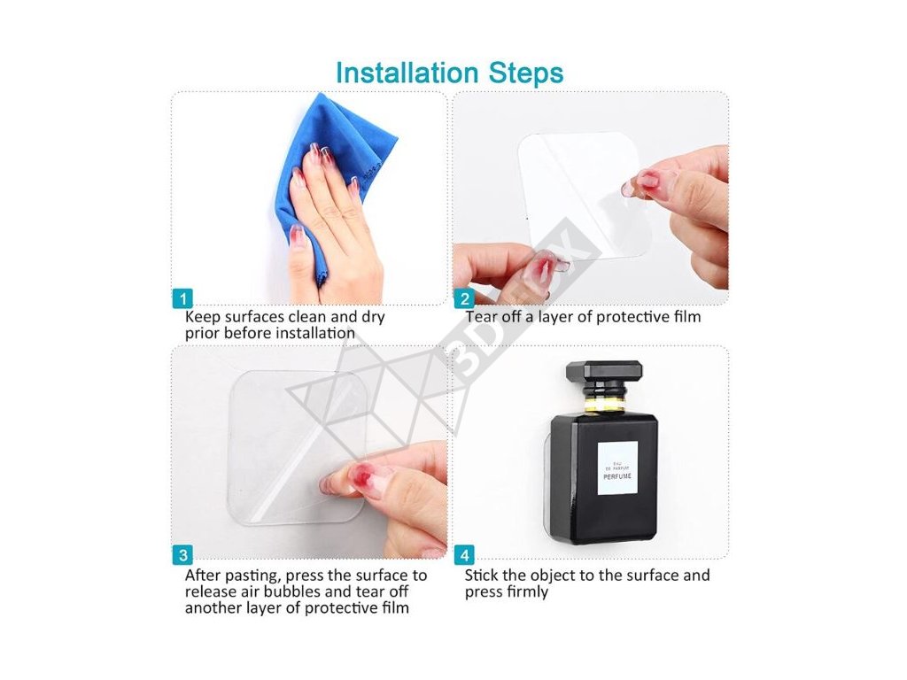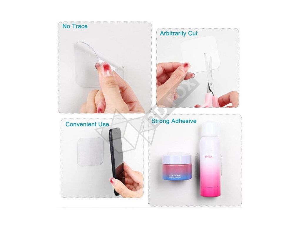 Das doppelseitige, transparente Quadrat eignet sich gut zum Aufkleben, Befestigen oder Verkleben von Gegenständen im Wohnzimmer.