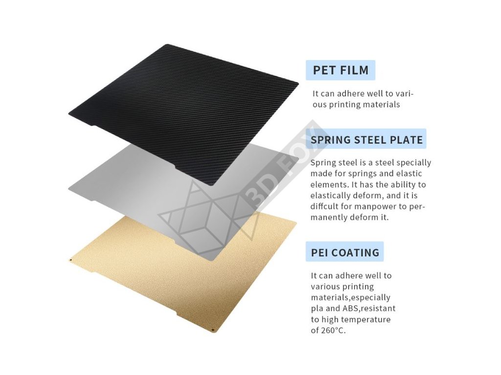 Der magnetische PEI Drucktampon erleichtert den 3D-Druck und die anschließende Handhabung des Drucks.Der Tampon istdoppelseitig, wobei eine Seite eine raue und die andere eine glatte Oberfläche hat,Dadurch kann der Tampon in Kombination mit PLA, ABS, PC, PETG und anderen Filamenttypen verwendet werden. Sobald das Objekt abgekühlt ist, löst es sich von selbst, oder Sie können das flexible Pad einfach biegen und das Objekt ohne Werkzeug (Messer, Spachtel usw.) entfernen.