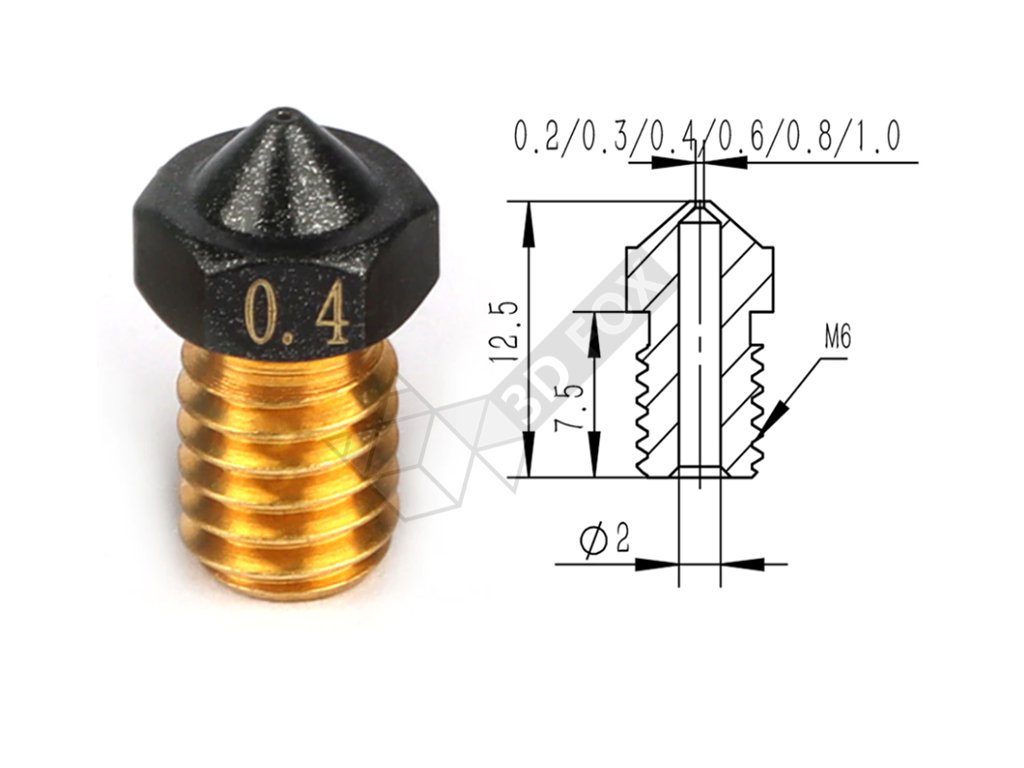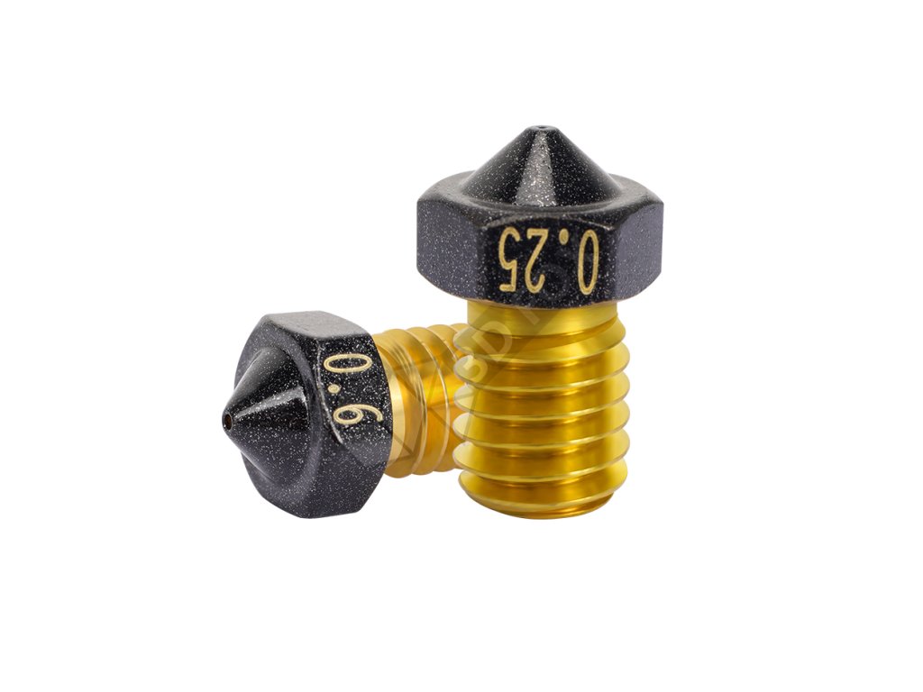 EineMessingdüse, die alle Drucker schätzen werden. Die Antihaftbeschichtung verhindert die Bildung von Klecksen.