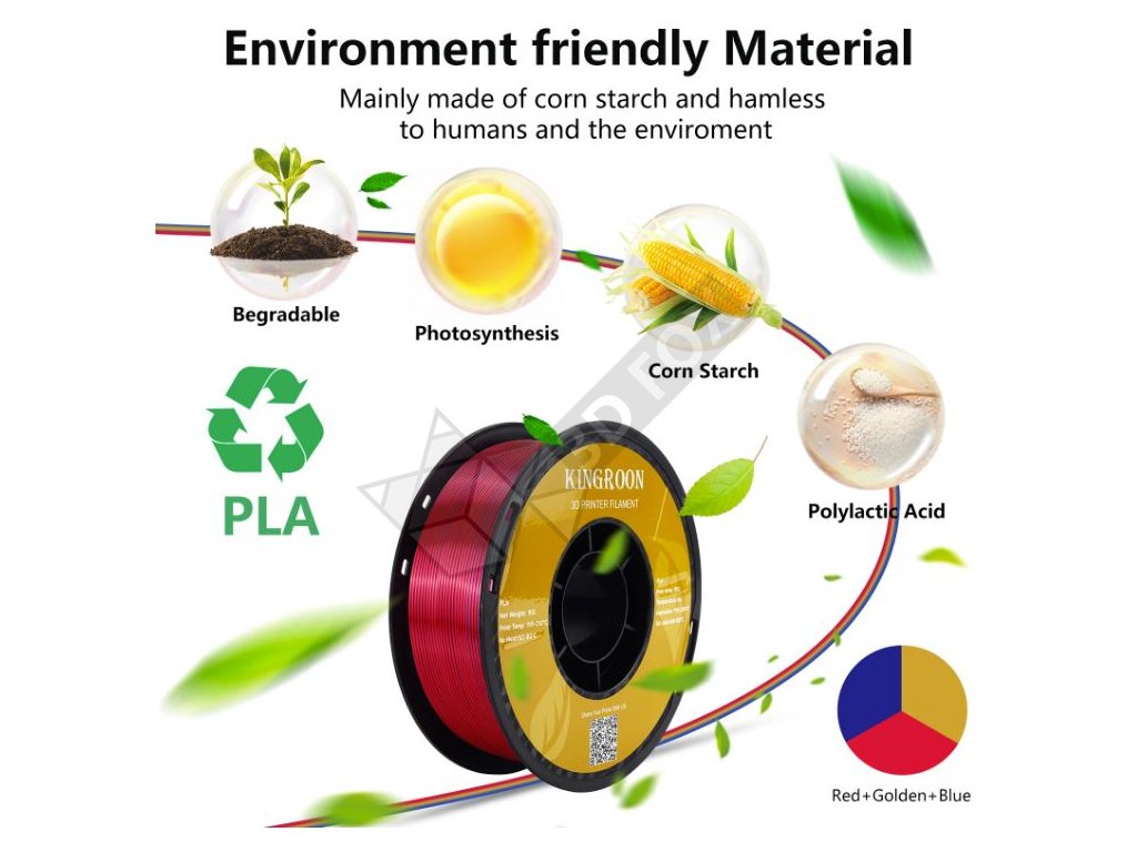 Filament Kingroon SILK PLA tricolor - blau, grün, gold 1 kg 1,75 mm
