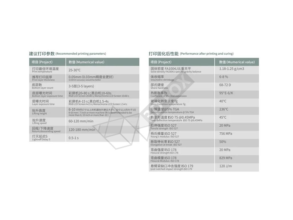 - Es wird empfohlen, versiegelt bei einer Umgebungstemperatur von 15℃ -35℃ aufzubewahren, je niedriger die Temperatur ist, desto höher ist die Viskosität des Harzes (*je schwerer es fließt).Übermäßige Staubigkeit oder Feuchtigkeit kann die Druckqualität beeinträchtigen.