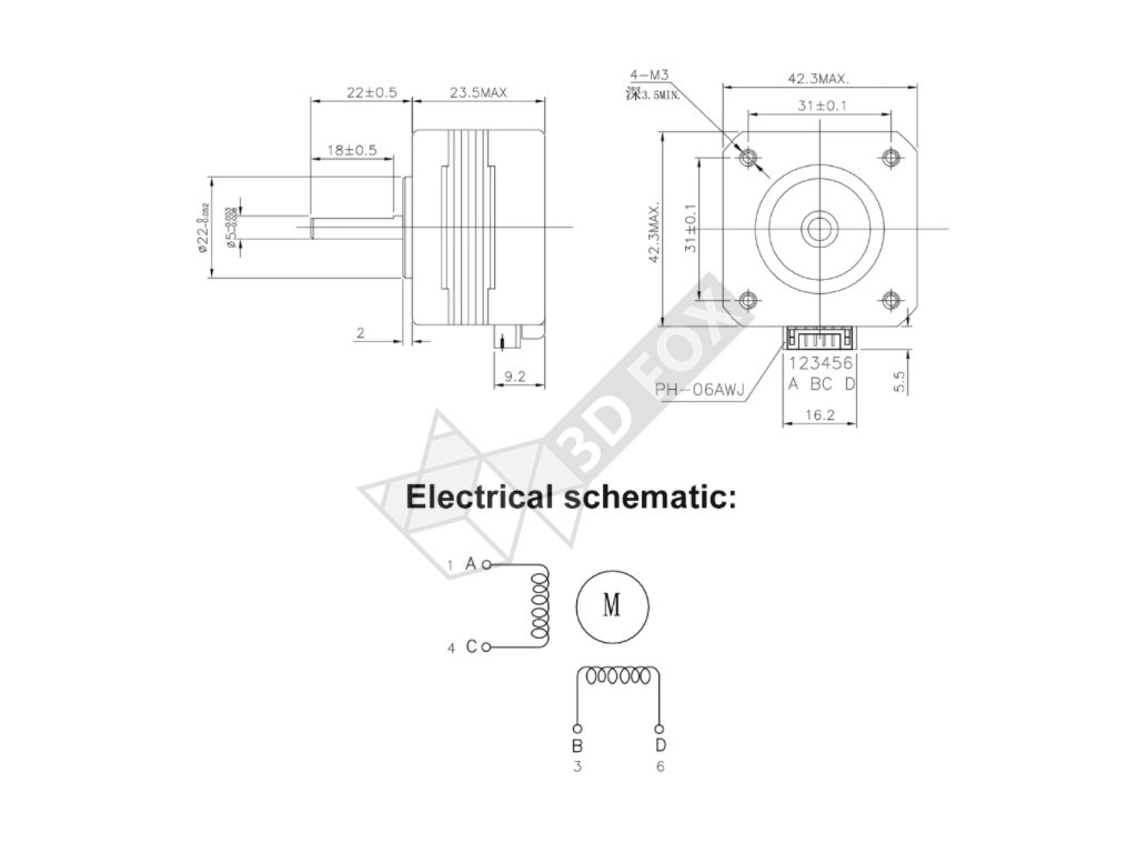 Schrittmotor Nema 17 (Pancake) 42x42x23mm