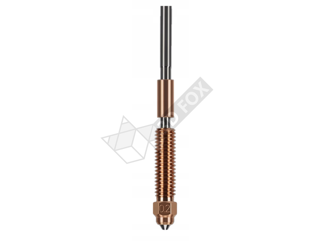 Der Hals besteht aus einer Titanlegierung, um die Wärmeleitung zu reduzieren. Die Düse besteht aus einer Kupferlegierung und gehärtetem Stahl und eignet sich für verschiedene Druckverbrauchsmaterialien.