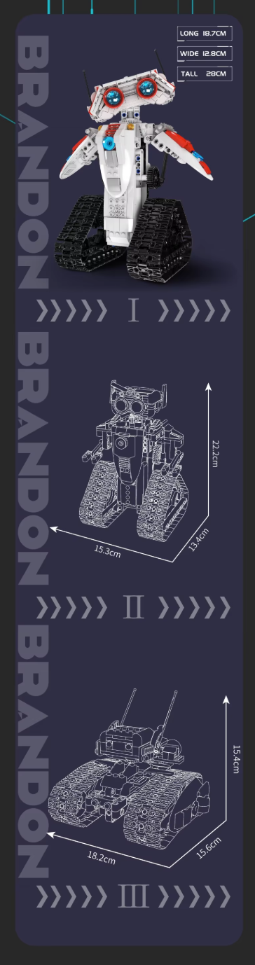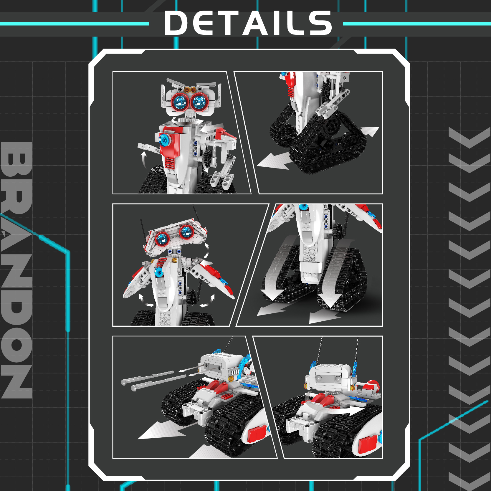 Mould King: Ein Set, drei verschiedene Welten Dieser variable Bausatz ist der perfekte Einstieg in die Welt der Robotik. Aus einem Satz Bausteine lassen sich drei völlig unterschiedliche Modelle bauen, so dass das Spielzeug nie langweilig wird. Ob du dich für einen niedlichen Roboter mit großen Augen, einen robusten Raupenpanzer oder einen futuristischen Rover entscheidest, du wirst immer Spaß beim Bauen und Steuern haben.