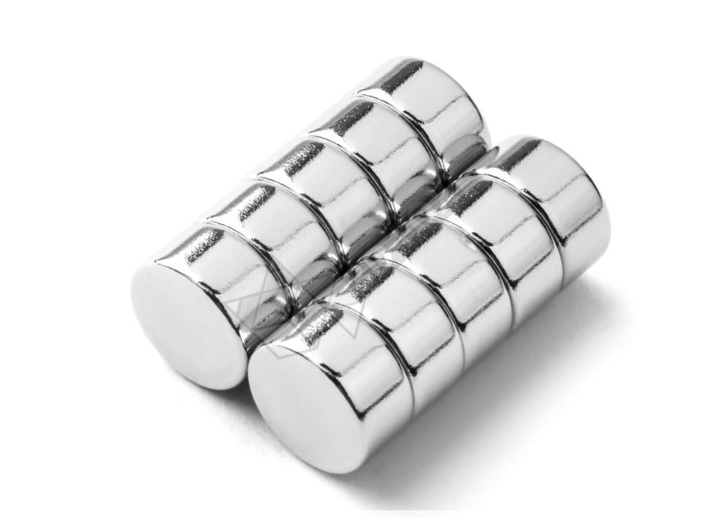 Scheibenmagnet Ø 10 mm, Höhe 5 mm, Neodym, N38, vernickelt, Stärke: ca. 2,7 kg