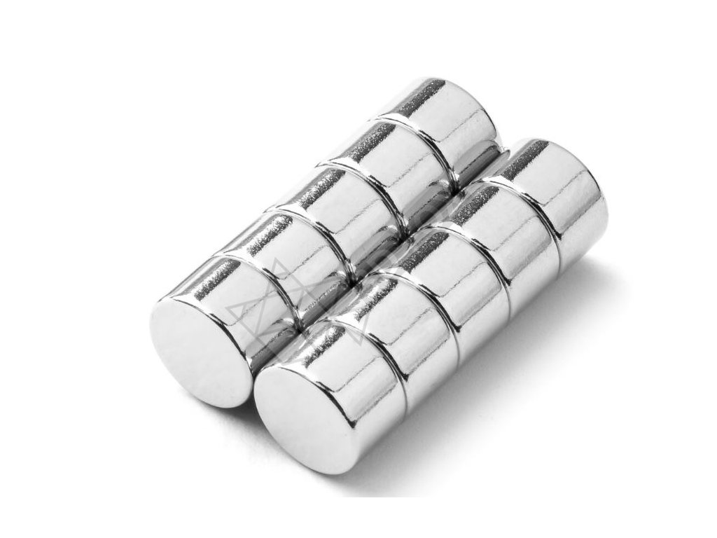 Scheibenmagnet Ø 8 mm, Höhe 5 mm, Neodym, N42, vernickelt, Stärke: ca. 2 kg