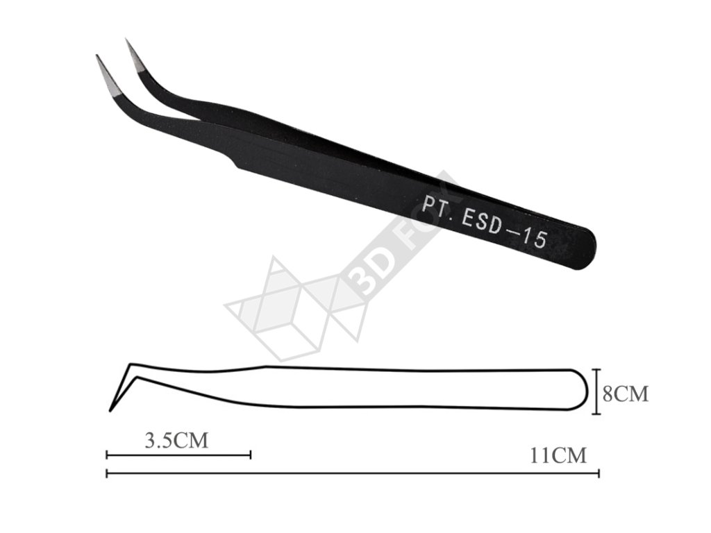 Gebogene Pinzette zum Ziehen von kleinen Halterungen oder zum Entfernen von Filament aus einer heißen Düse.