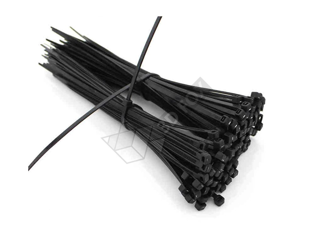 Das Band misst 3,6 × 300 mmund wird in Packungen zu100 Stück geliefert. Sie bestehen ausPA6in schwarz. Sie fallen in die Brennbarkeitsklasse94V-2und haben eine Feuchtigkeitsaufnahmekapazität von nur 2,8%. Die Bänder sindUV-beständigund können in einem Betriebstemperaturbereich von -40°C bis 90°C verwendet werden, was auch der empfohlene Bereich für die Installation ist. Ihre Eigenschaften machen sie beständig gegen Lösungsmittel, Öle, Schmiermittel, Erdölprodukte, Säuren, Laugen, Phenole und chlorierte Lösungsmittel.