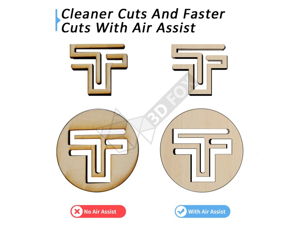 Die Luftunterstützung kann die Oberflächentemperatur von Objekten während des Gravierens und Schneidens schnell reduzieren, wodurch Verformungen und Verfärbungen aufgrund hoher Temperaturen verhindert werden und glatte Linien, vollständige Muster und saubere Materialoberflächen gewährleistet werden.